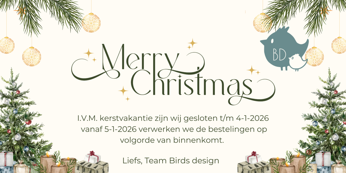 Bij Birds design verwerken we alle bestellingen op volgorde van binnenkomst. Spoedbestellingen zijn helaas niet mogelijk, dus bestel op tijd om teleurstellingen te voorkomen. De levertijd voor verzending kan oplopen tot 10 werkdagen.